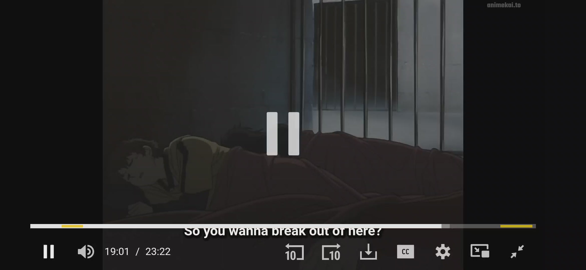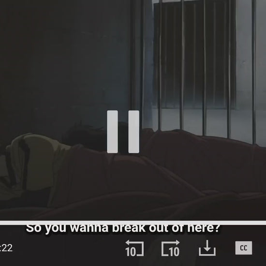 Kiba senses something happening and instinctively moves to grapple with the bars of his cell. But his cleverer companion smiles and pulls out a skeleton key that can unlock the door.